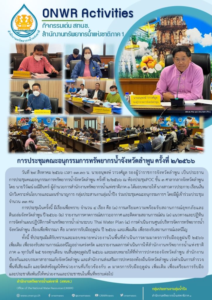 การประชุมคณะอนุกรรมการทรัพยากรน้ำจังหวัดลำพูน ครั้งที่ 2/2566