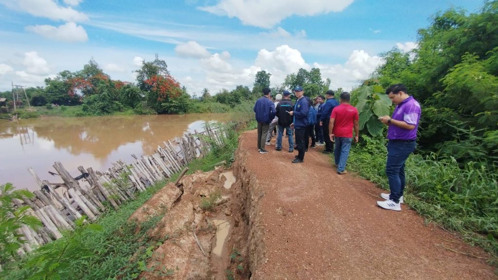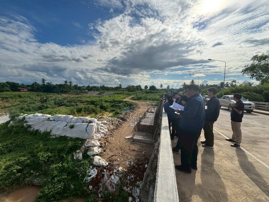 วันที่ 28 – 30 พฤษภาคม 2568 นายอนันต์ เพ็ชร์หนู ผู้อำนวยการสำนักงานทรัพยากรน้ำแห่งชาติภาค 1 พร้อมด้วย เจ้าหน้าที่ สทนช.1 ลงพื้นที่ติดตามการดำเนินงานมาตรการรับมือฤดูฝน ปี 2568 ตามมาตรการที่ 3 เตรียมความพร้อมเครื่องจักร เครื่องมือ อาคารชลศาสตร์ ระบบระบายน้ำ โทรมาตรบุคลากรประจำพื้นที่เสี่ยง ให้สามารถรองรับสถานการณ์ในช่วงน้ำหลากและฝนทิ้งช่วง มาตรการที่ 4 ตรวจสอบพร้อมติดตามความมั่นคงปลอดภัย คันกั้นน้ำ ทำนบ พนังกั้นน้ำ และมาตรการ ที่ 5 เพิ่มประสิทธิภาพการระบายน้ำของทางน้ำอย่างเป็นระบบ ในพื้นที่ลุ่มน้ำยม จังหวัดสุโขทัย อำเภอเมืองสุโขทัย อำเภอศรีสำโรง อำเภอศรีสัชนาลัย และอำเภอสวรรคโลก รวมจำนวน 13 แห่ง ร่วมกับคณะกรรมการลุ่มน้ำยมผู้แทนองค์กรผู้ใช้น้ำ และหน่วยงานที่เกี่ยวข้อง เพื่อเตรียมความพร้อมรับมือกับสถานการณ์อุทกภัย โดยการลงพื้นที่ตรวจสอบความมั่นคงแข็งแรงคันกั้นน้ำที่ได้รับความเสียหายจากอุทกภัยปี 2567 ซึ่งปัจจุบันได้มีการซ่อมแซมคันกั้นน้ำชั่วคราวด้วยการบดอัด ถมคันดินและเสริมไม้ยูคา สภาพปัจจุบันพร้อมใช้งาน (ชั่วคราว) แต่มีบางจุดที่ชำรุดเสียหาย เนื่องจากมีปริมาณฝนตกหนักต่อเนื่องในพื้นที่ โดยท้องถิ่นได้จัดเตรียมงบประมาณซ่อมแซมไว้ในช่วงเดือน มิถุนายน – กรกฎาคม ซึ่งจะมีปริมาณฝนลดลง ในการนี้ สทนช.1 ได้ติดตามความก้าวหน้าการซ่อมแซมตลิ่งป้องกันน้ำท่วม และพนังกั้นน้ำ ดังนี้