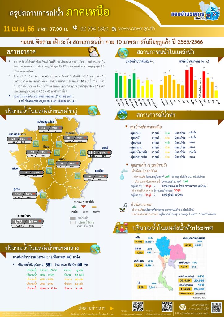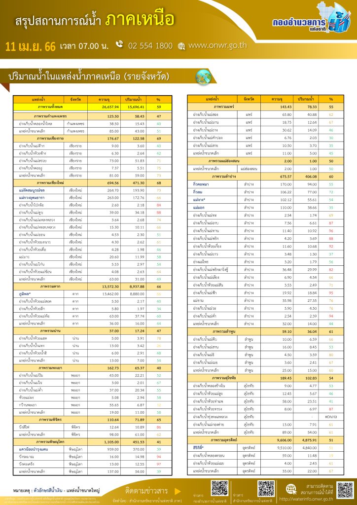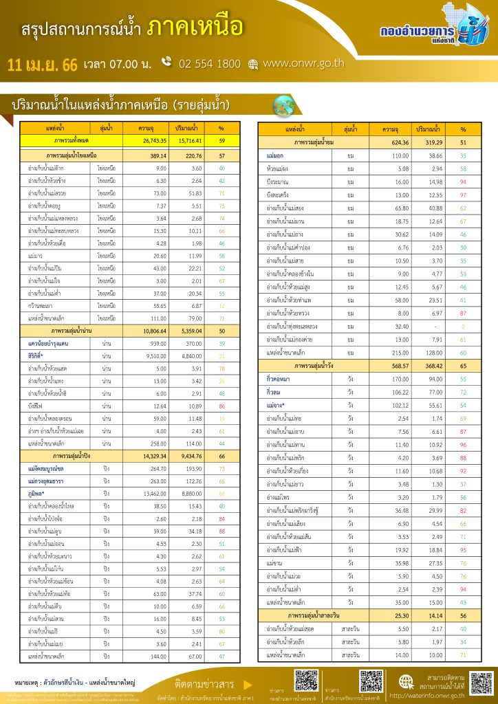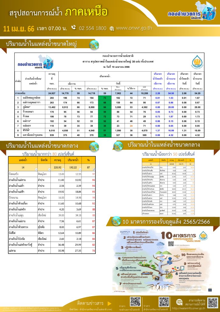 สรุปสถานการณ์น้ำ ภาคเหนือ ประจำวันที่ 11 เมษายน 2566
