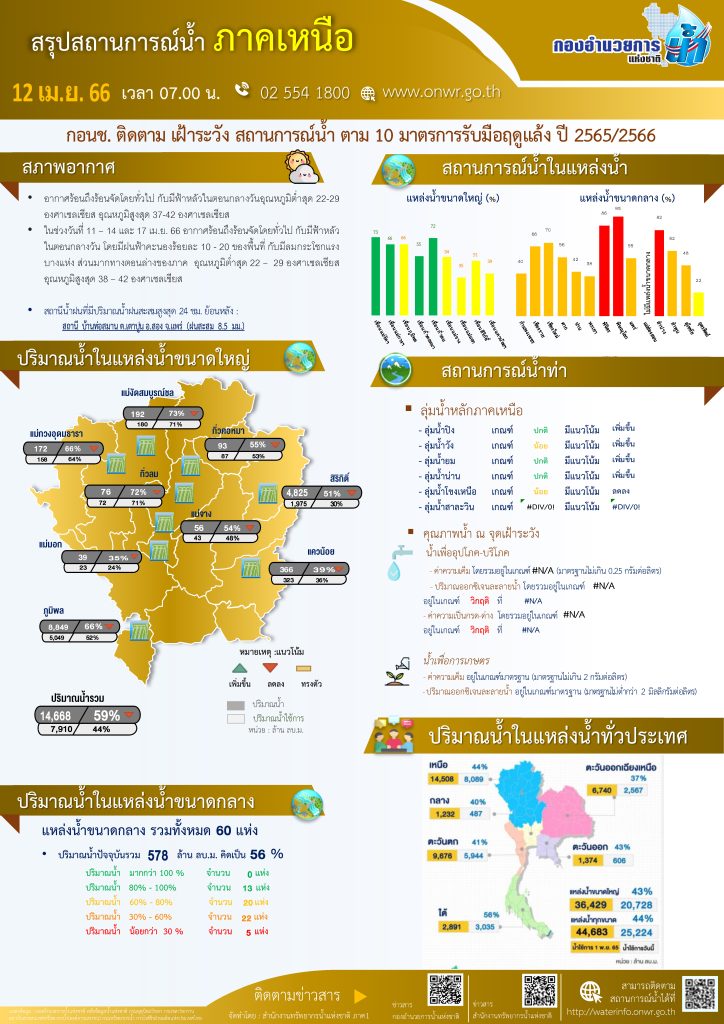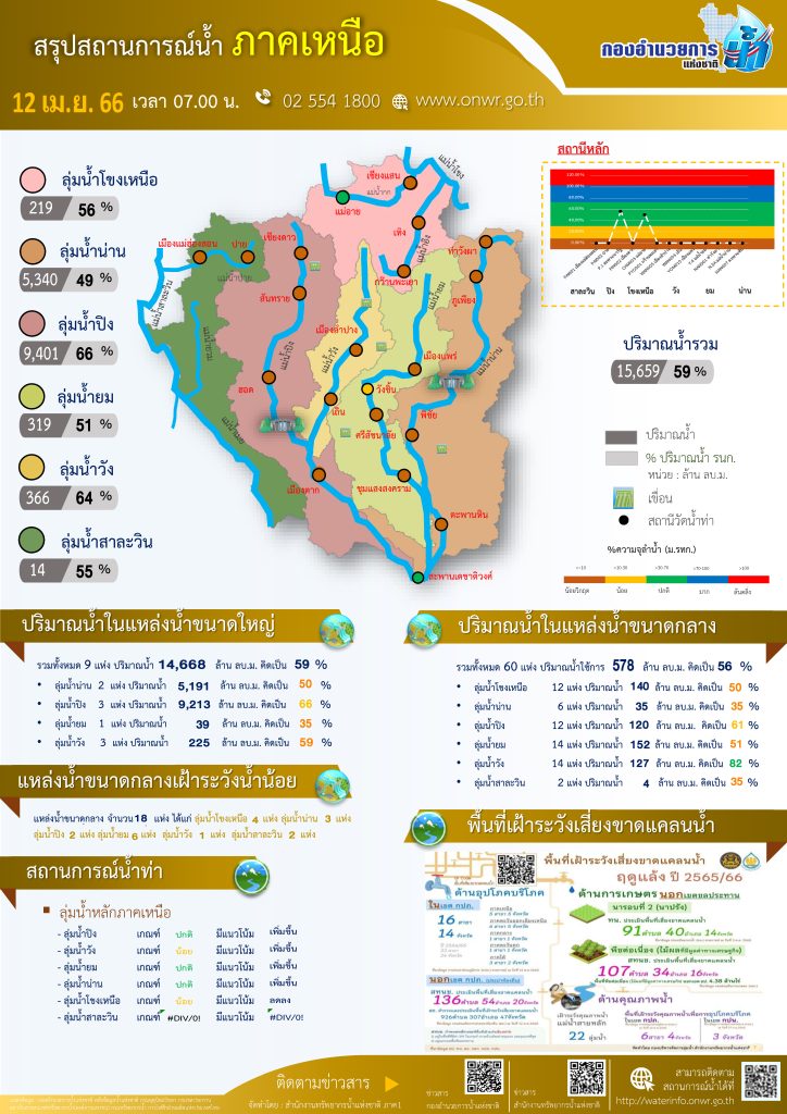 สรุปสถานการณ์น้ำ ภาคเหนือ ประจำวันที่ 12 เมษายน 2566