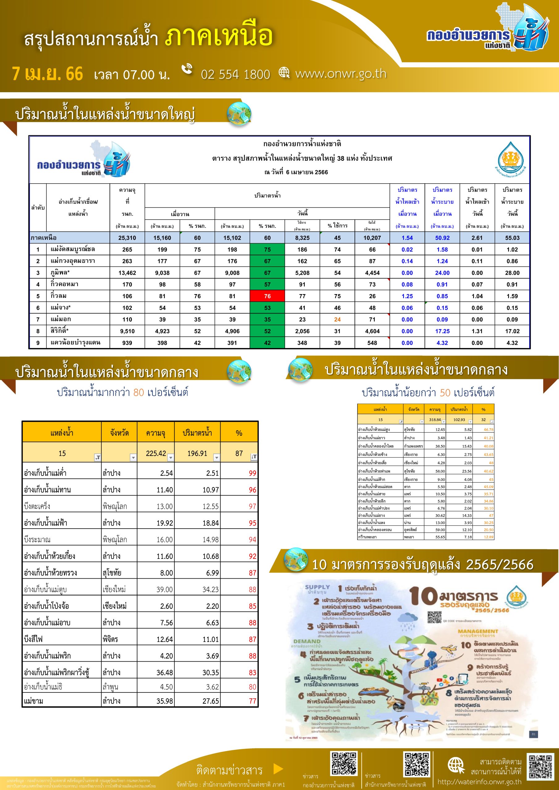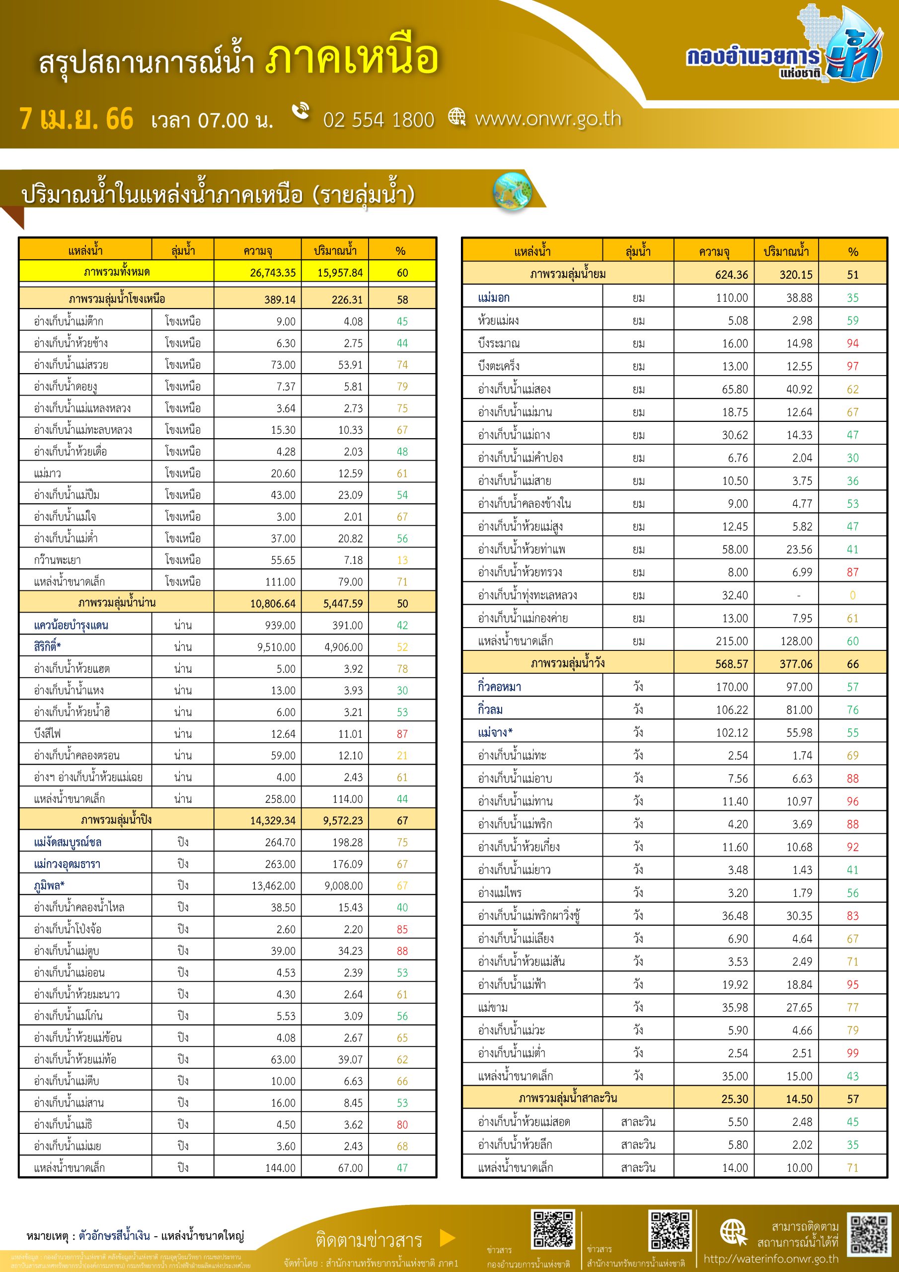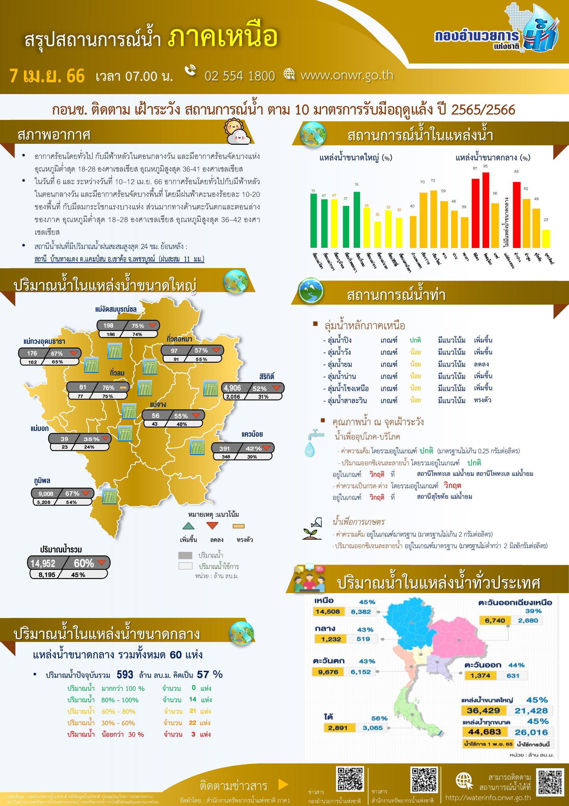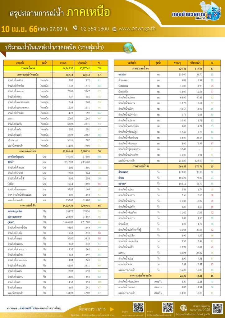 สรุปสถานการณ์น้ำ ภาคเหนือ ประจำวันที่ 7 เมษายน 2566