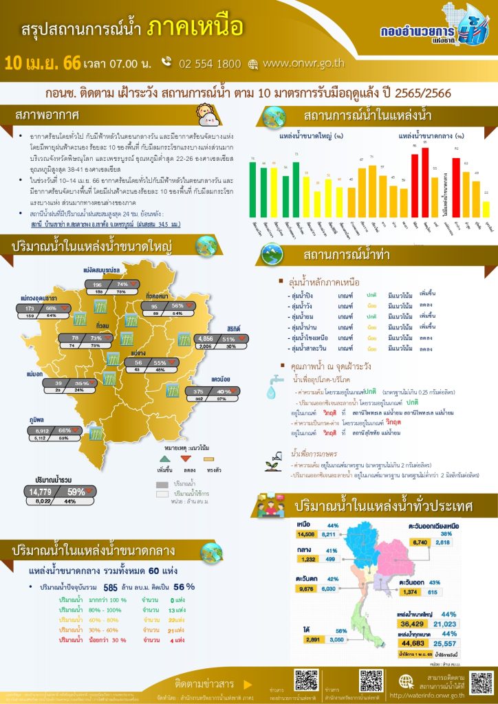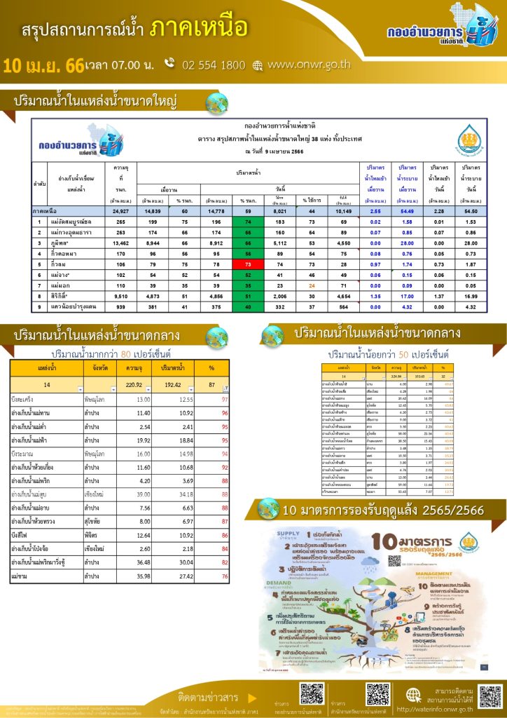 สรุปสถานการณ์น้ำ ภาคเหนือ ประจำวันที่ 10 เมษายน 2566