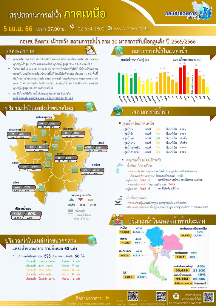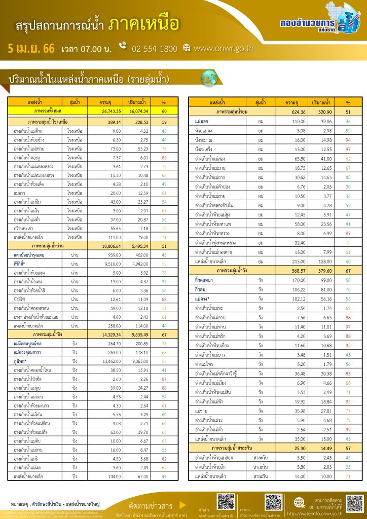 สรุปสถานการณ์น้ำ ภาคเหนือ ประจำวันที่ 5 เมษายน 2566