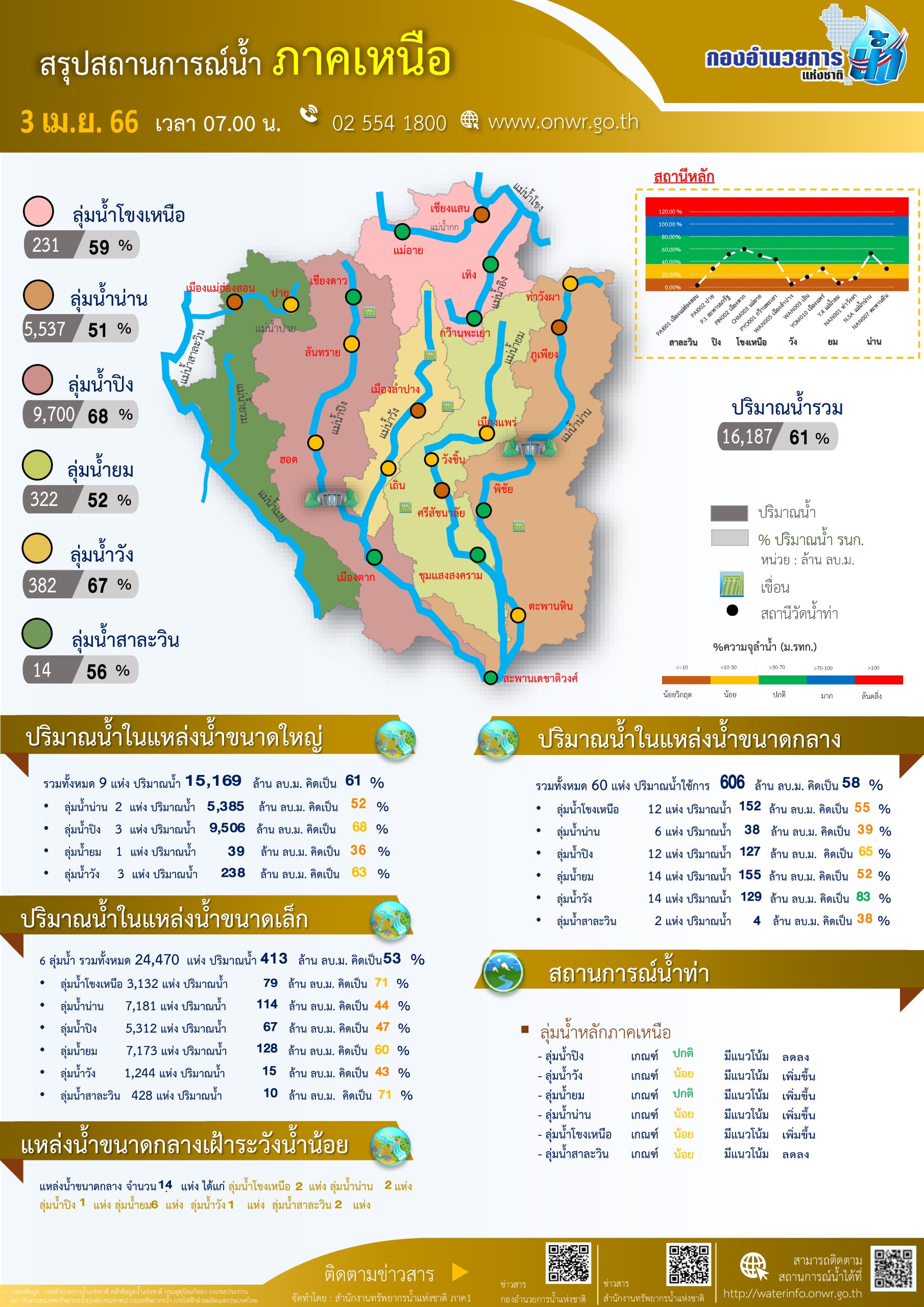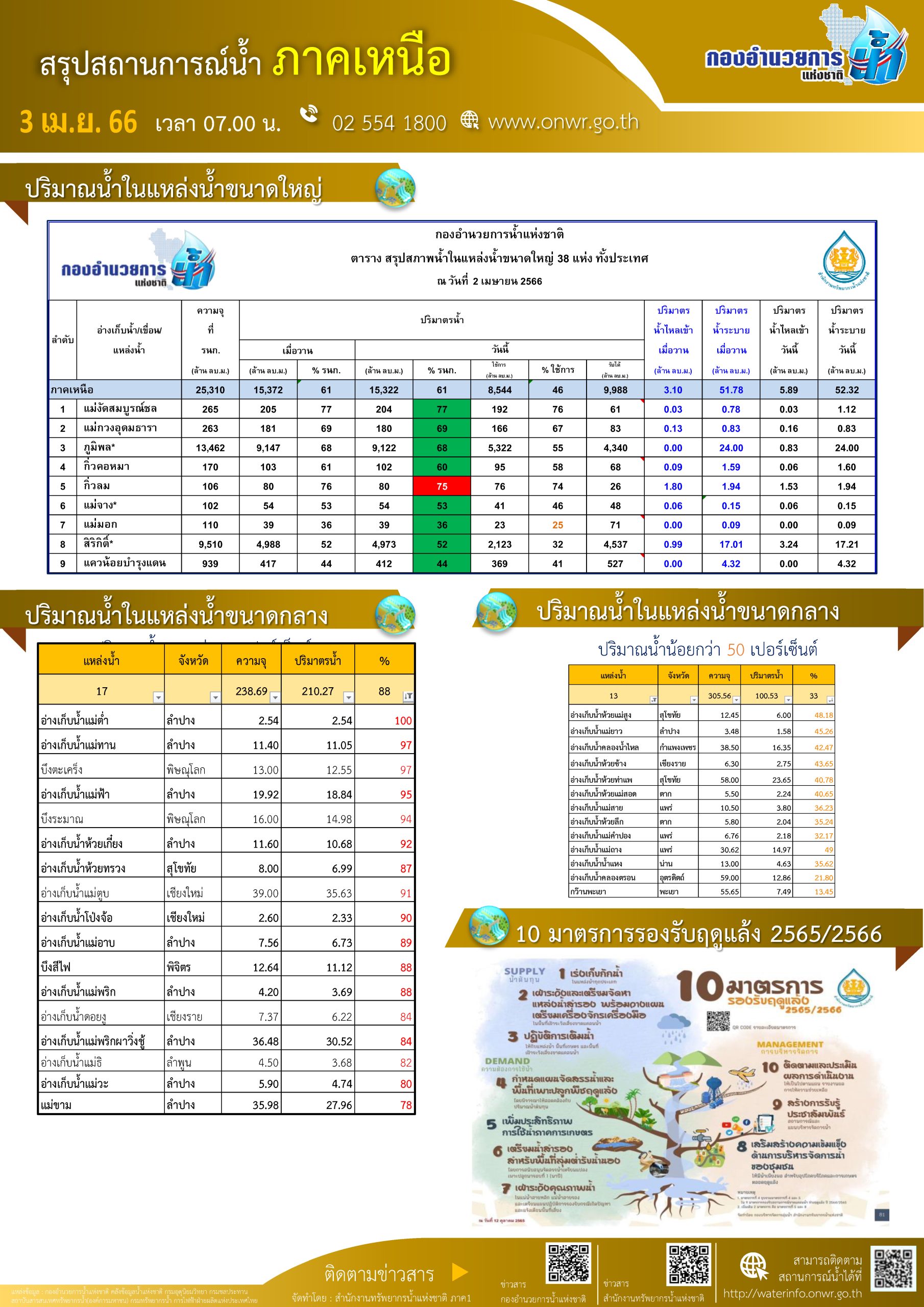 สรุปสถานการณ์น้ำ ภาคเหนือ ประจำวันที่ 3 เมษายน 2566
