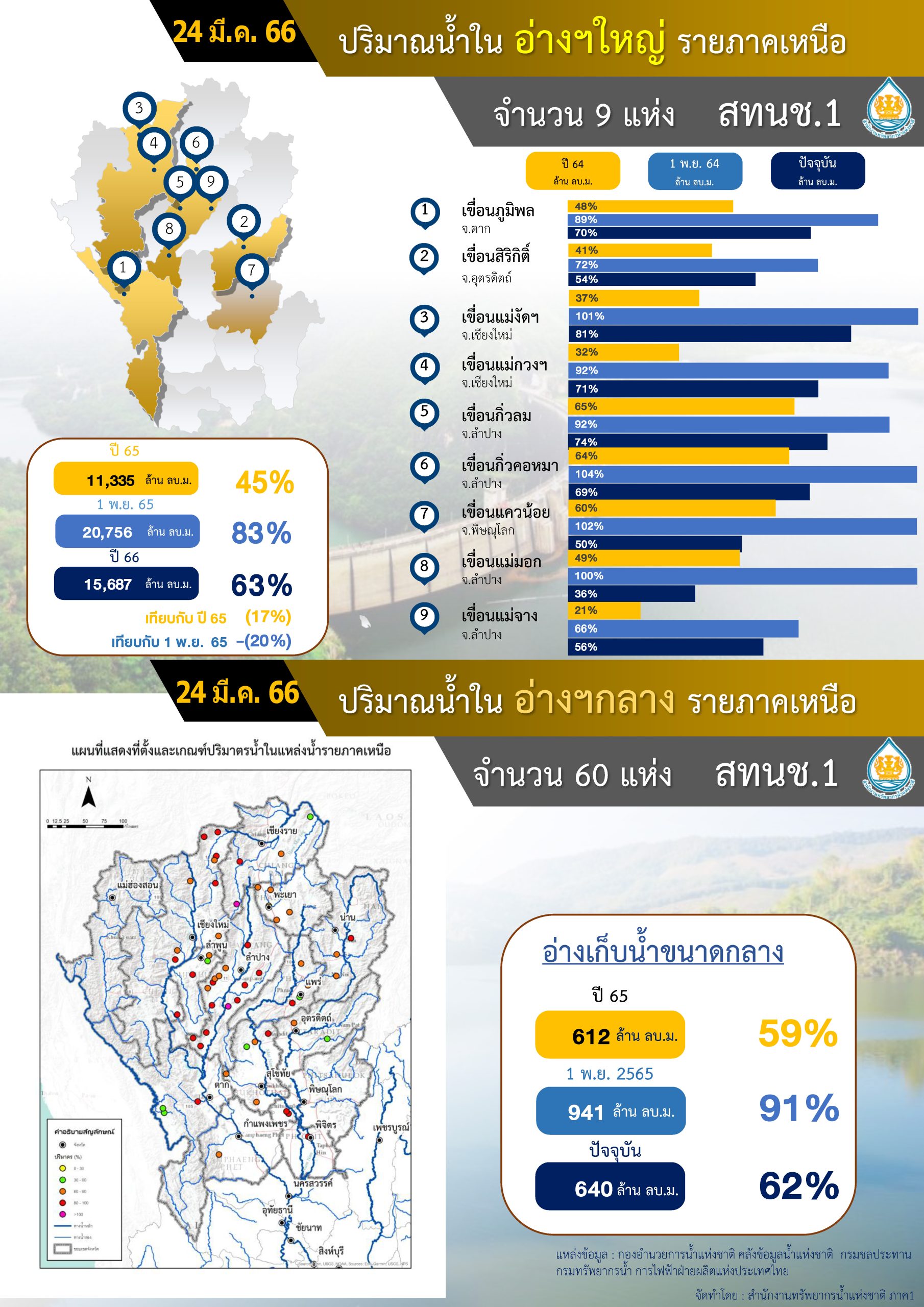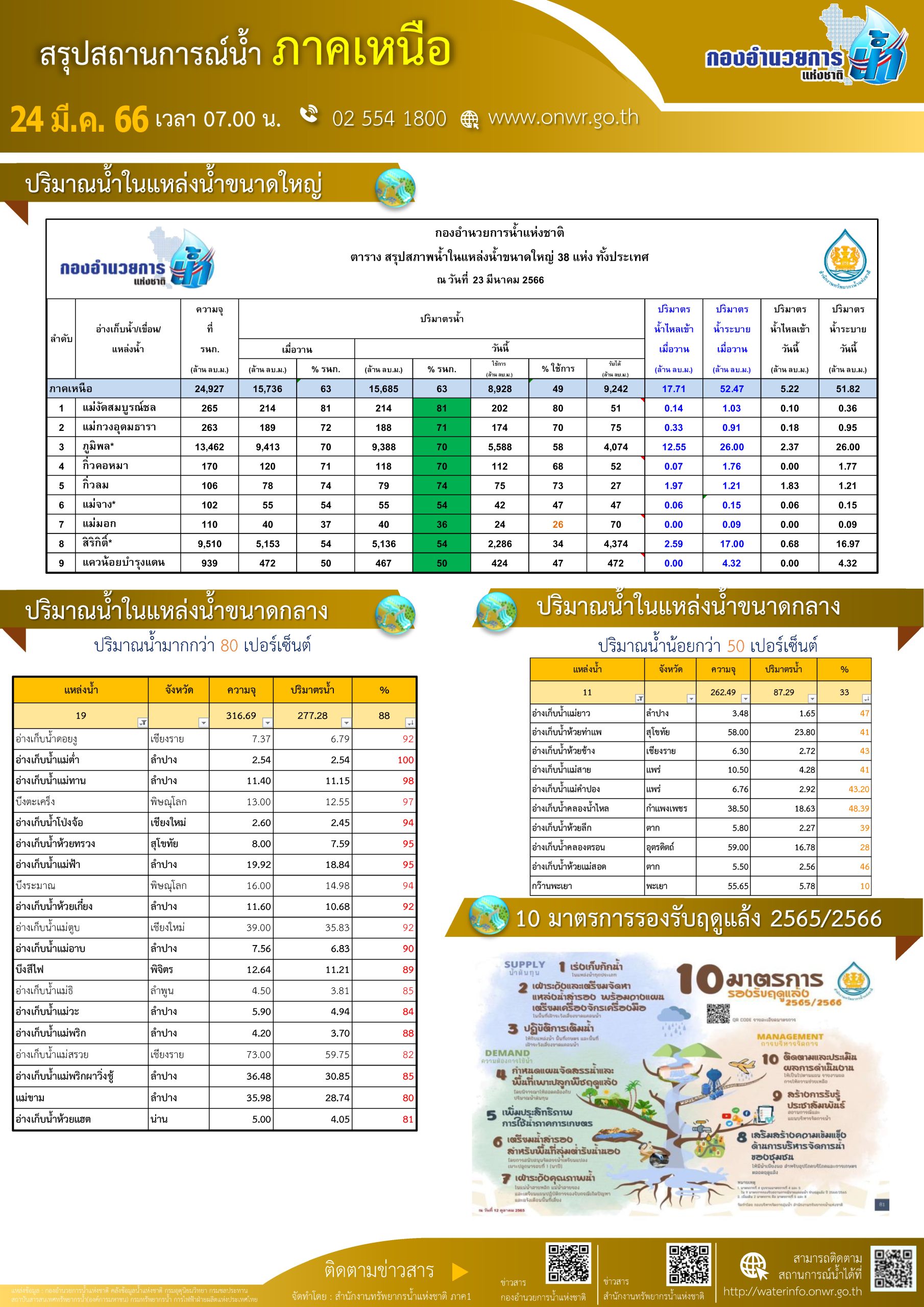 สรุปสถานการณ์น้ำ ภาคเหนือ ประจำวันที่ 24 มีนาคม 2566