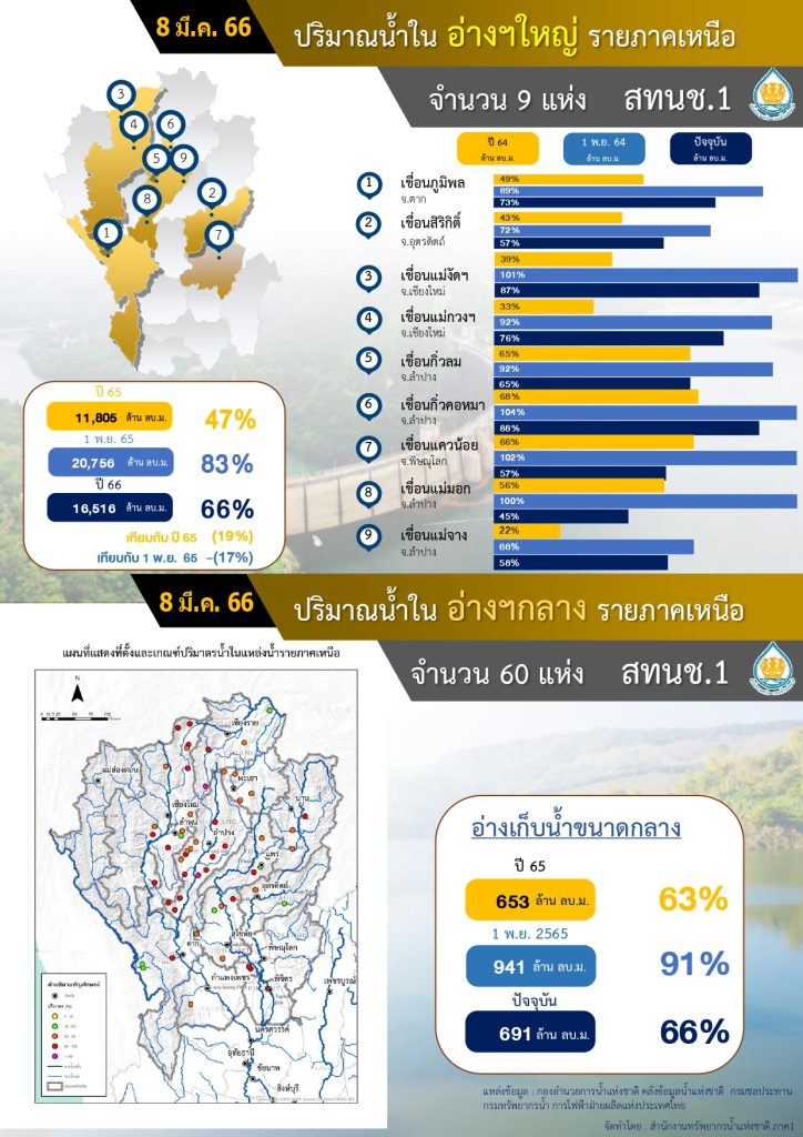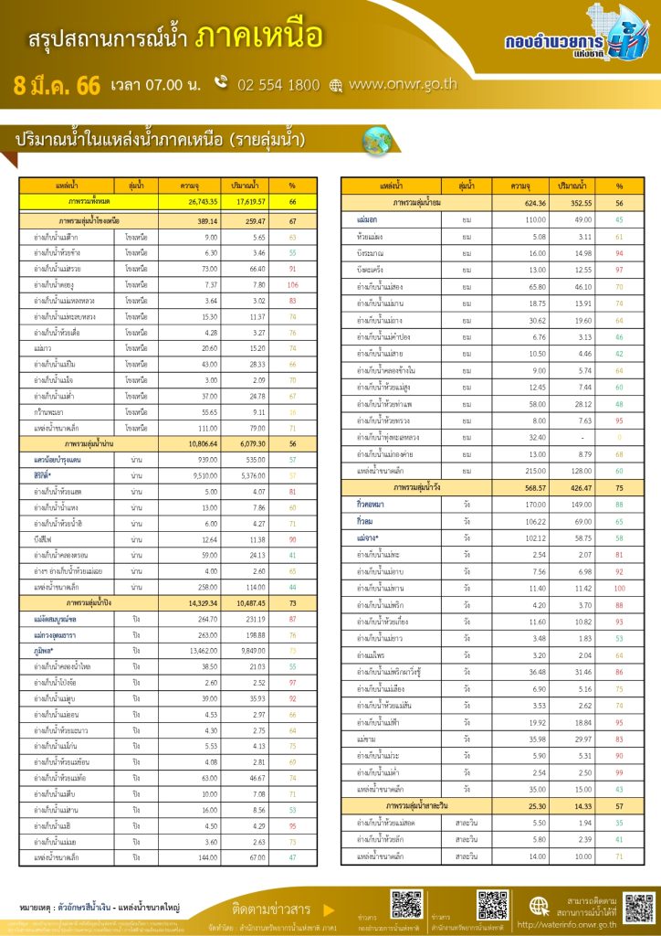 สรุปสถานการณ์น้ำ ภาคเหนือ ประจำวันที่ 8 มีนาคม 2566