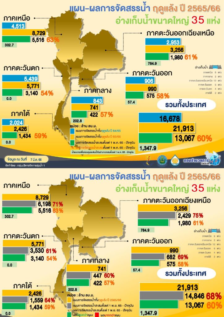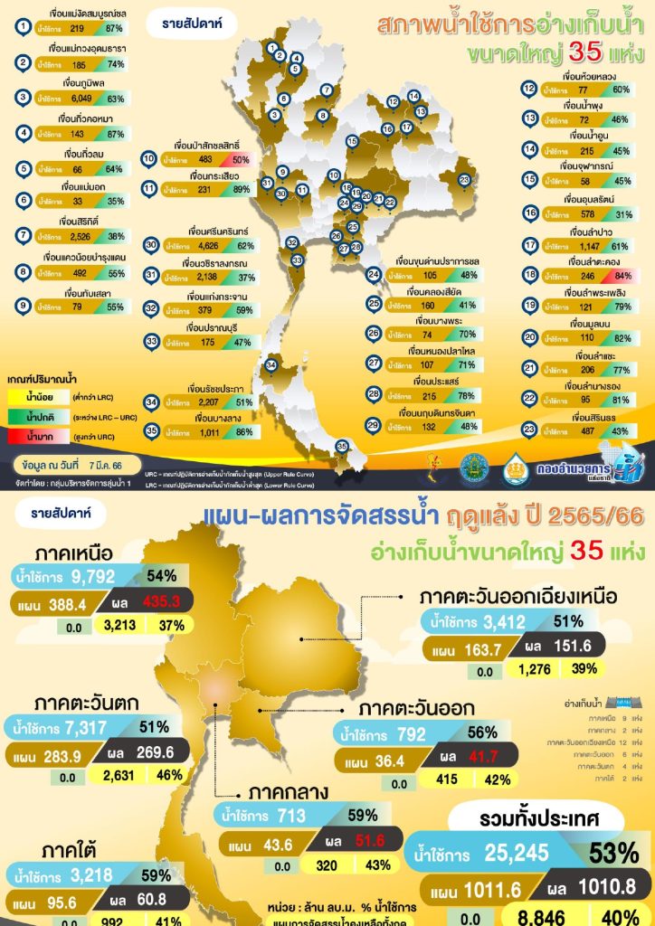 สถานการณ์น้ำฤดูแล้งปี 2566 ในแหล่งน้ำขนาดใหญ่และขนาดกลาง ลุ่มน้ำโขงเหนือ ประจำวันที่ 7 มีนาคม 2566