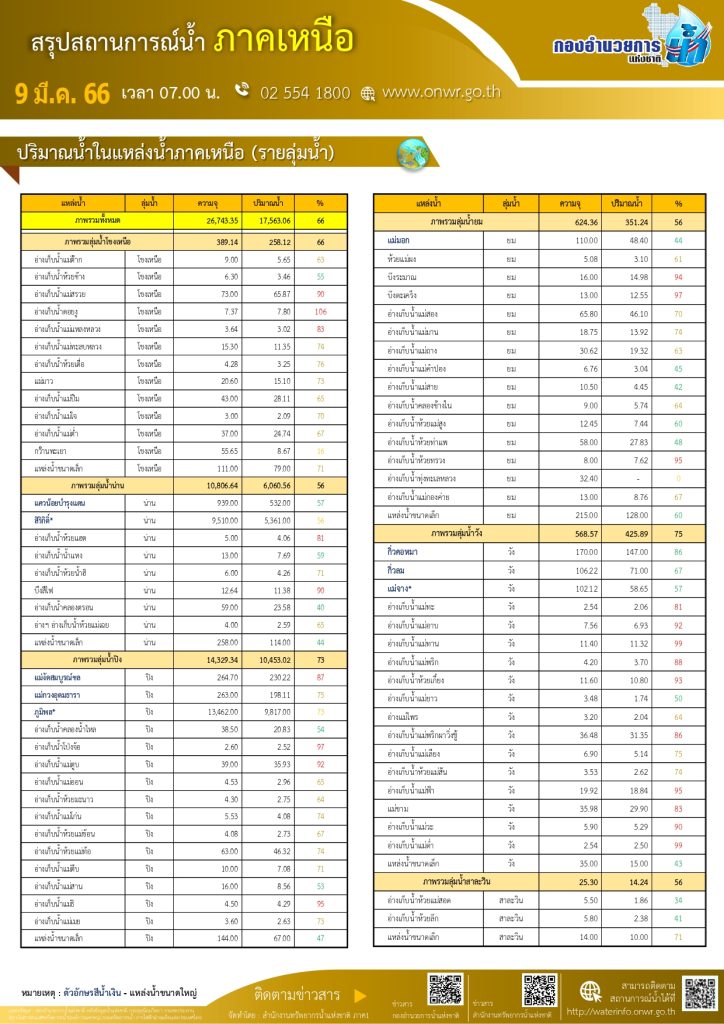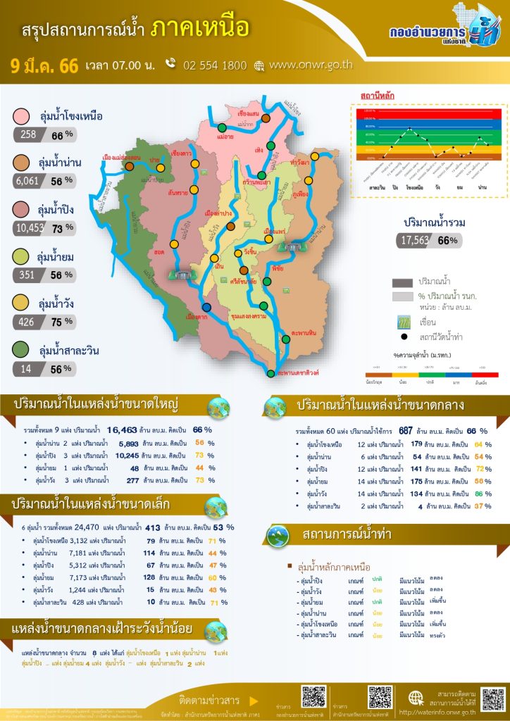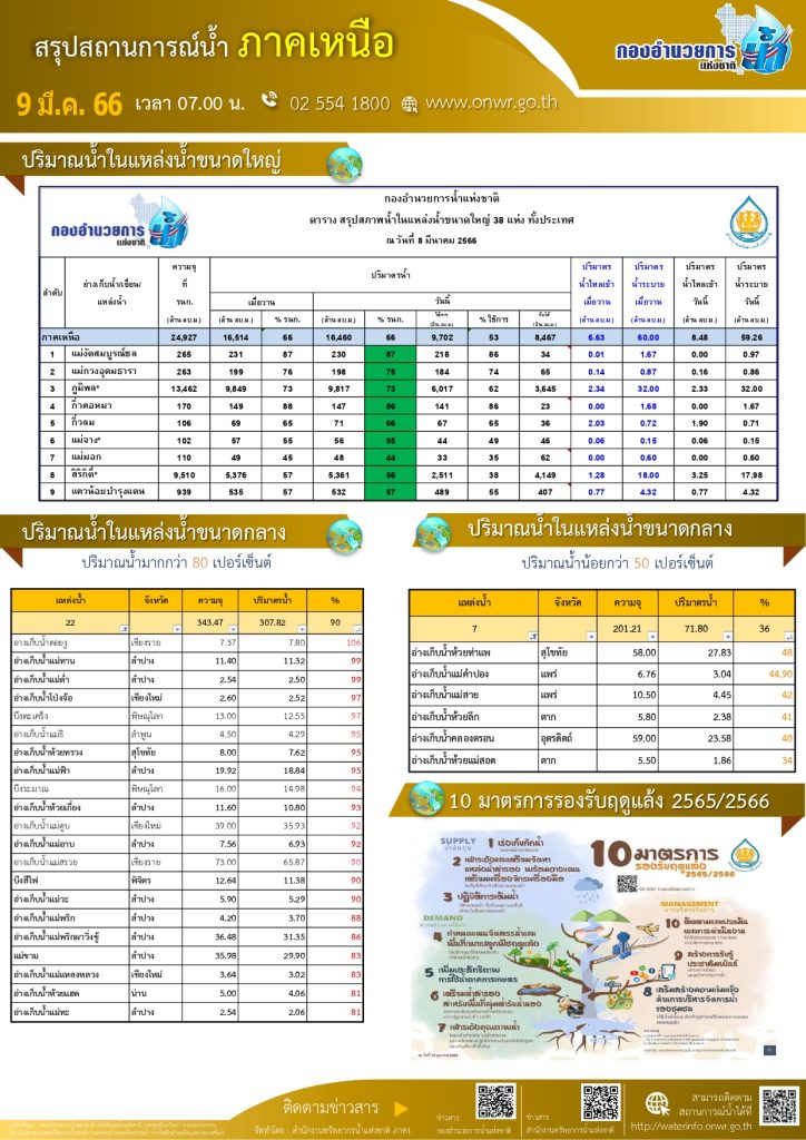 สรุปสถานการณ์น้ำ ภาคเหนือ ประจำวันที่ 9 มีนาคม 2566