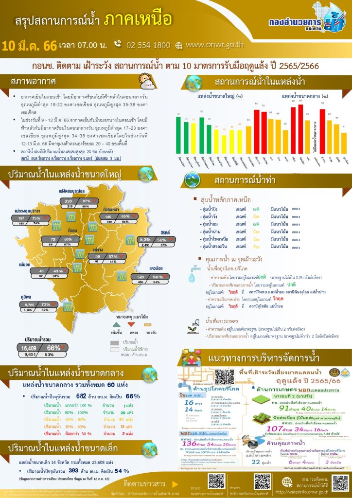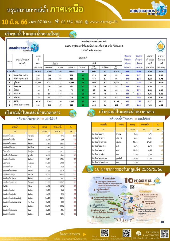 สรุปสถานการณ์น้ำ ภาคเหนือ ประจำวันที่ 10 มีนาคม 2566