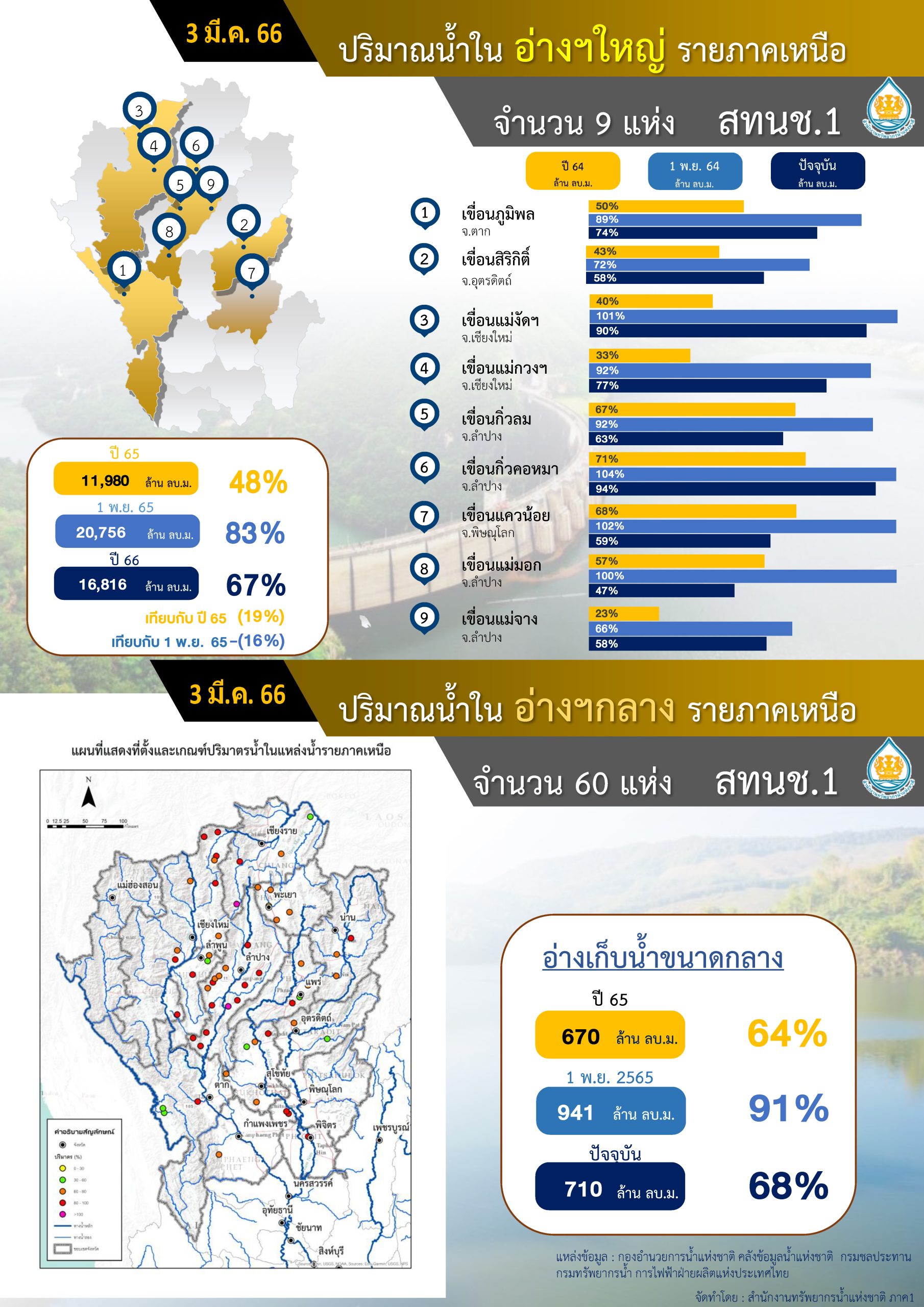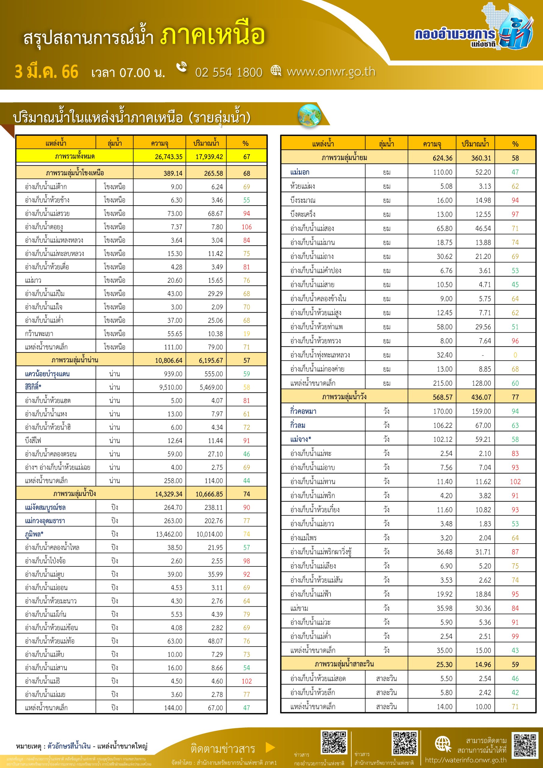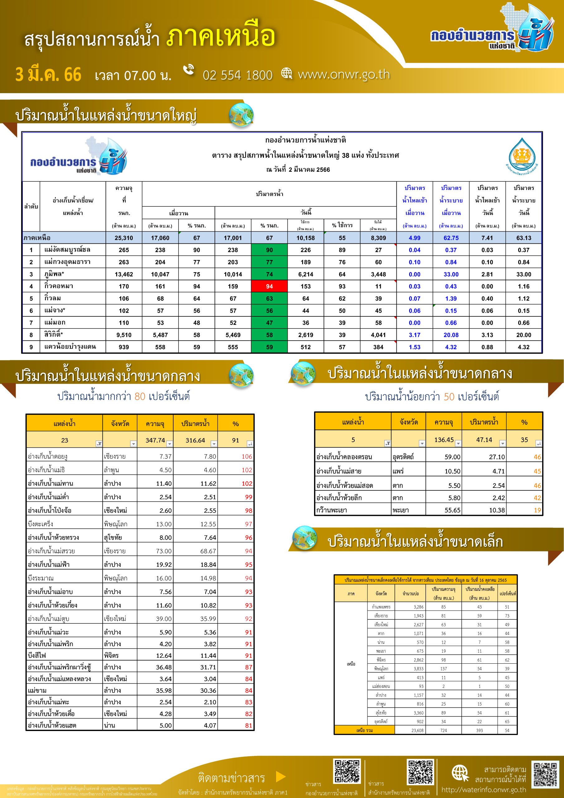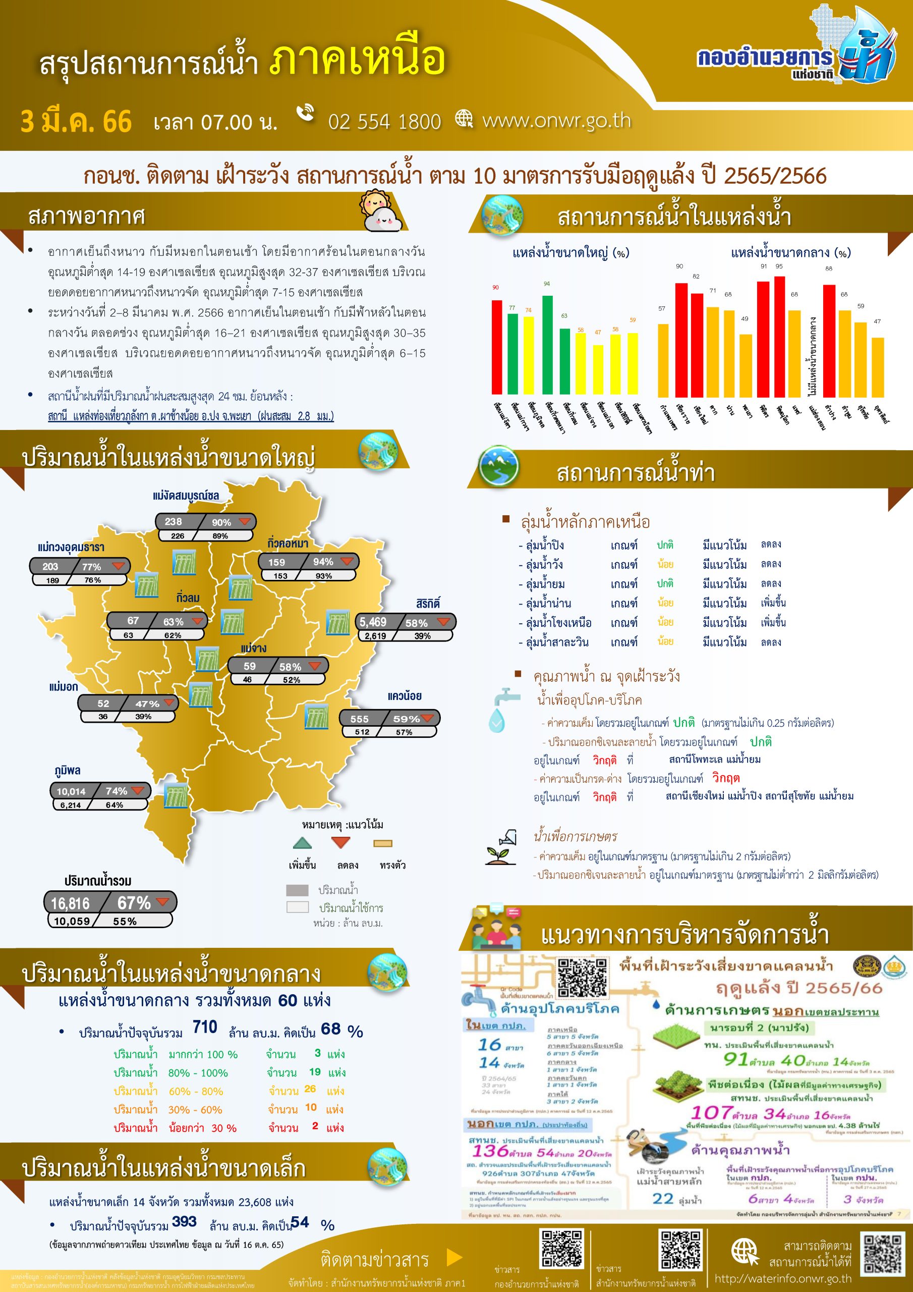 สรุปสถานการณ์น้ำ ภาคเหนือ ประจำวันที่ 3 มีนาคม 2566