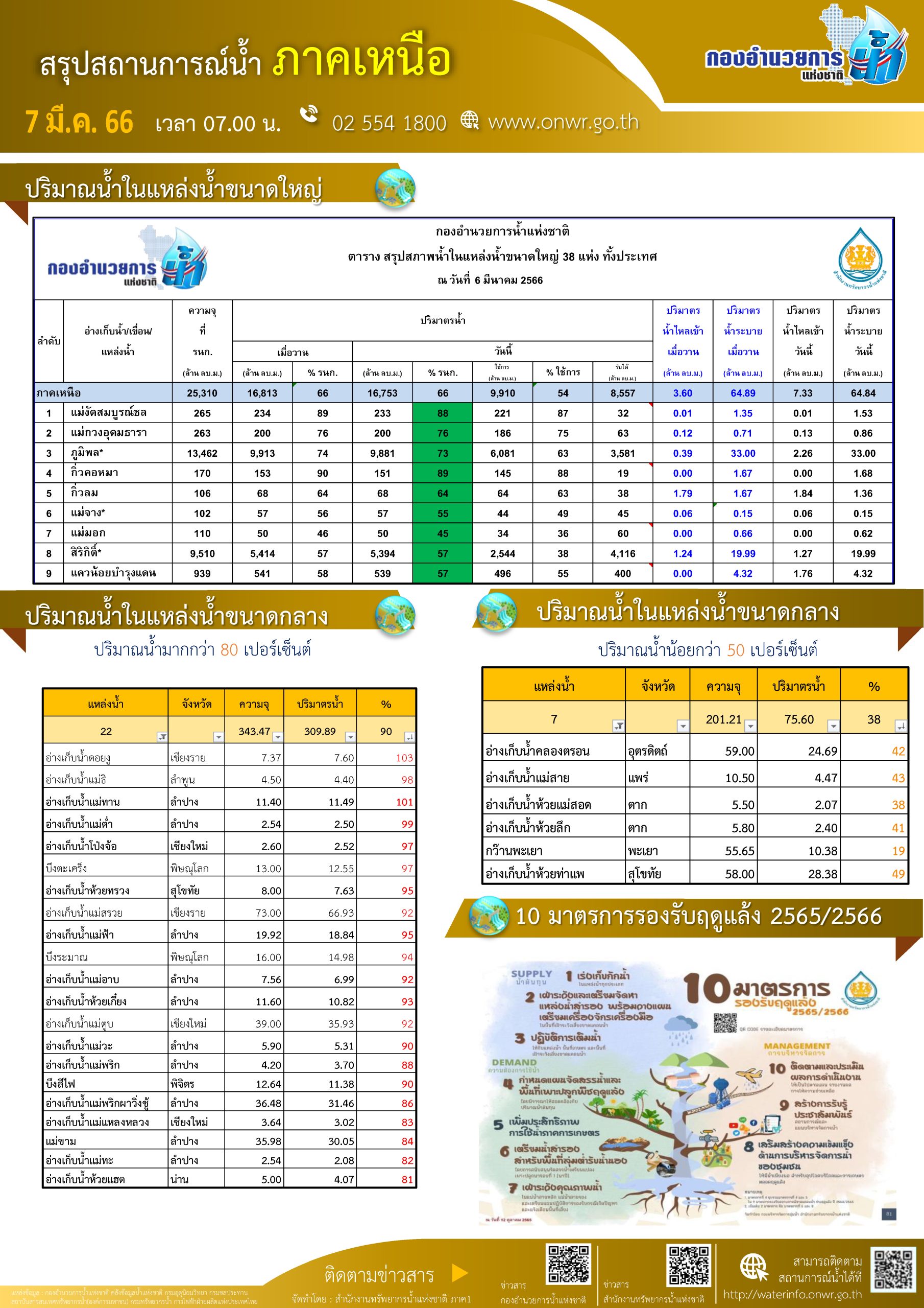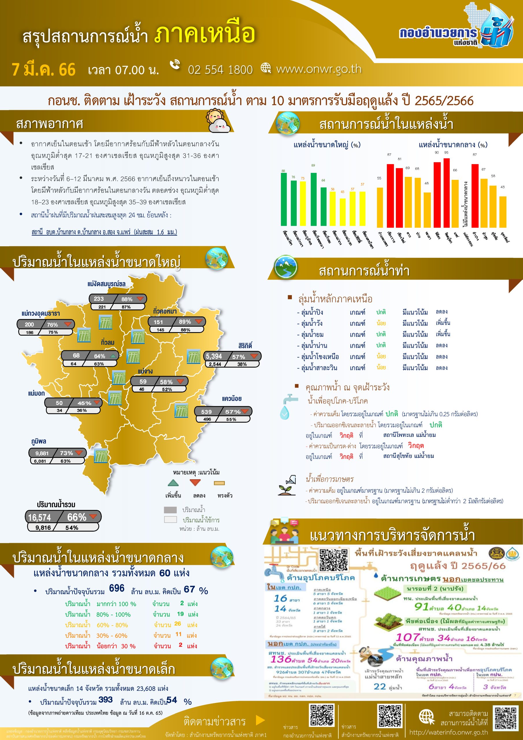 สรุปสถานการณ์น้ำ ภาคเหนือ ประจำวันที่ 7 มีนาคม 2566