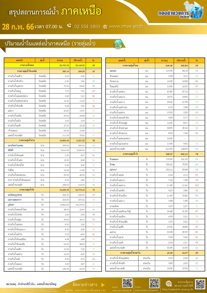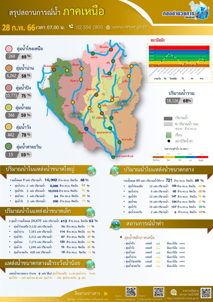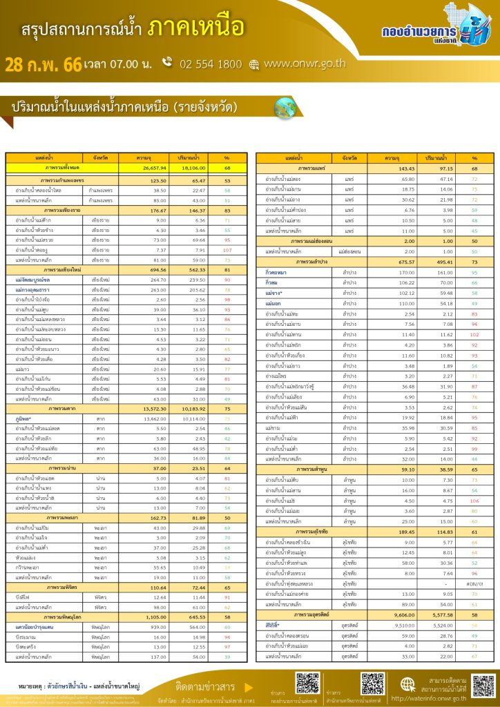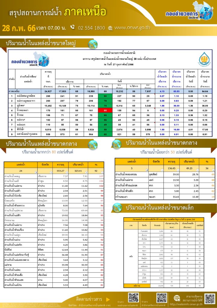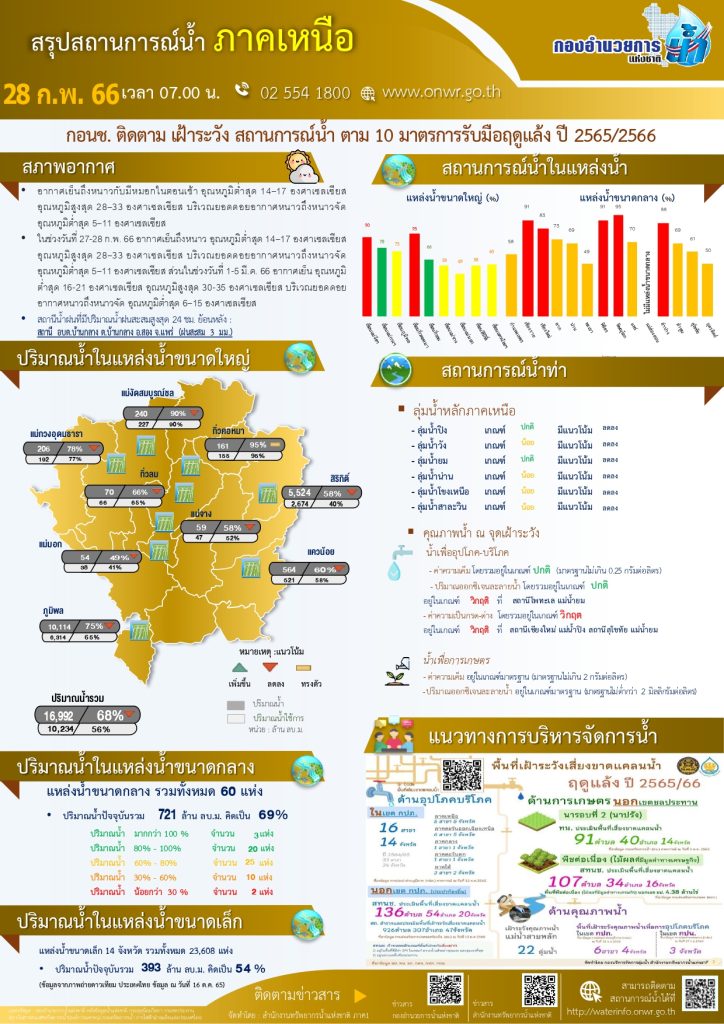 สรุปสถานการณ์น้ำ ภาคเหนือ ประจำวันที่ 28 กุมภาพันธ์ 2566