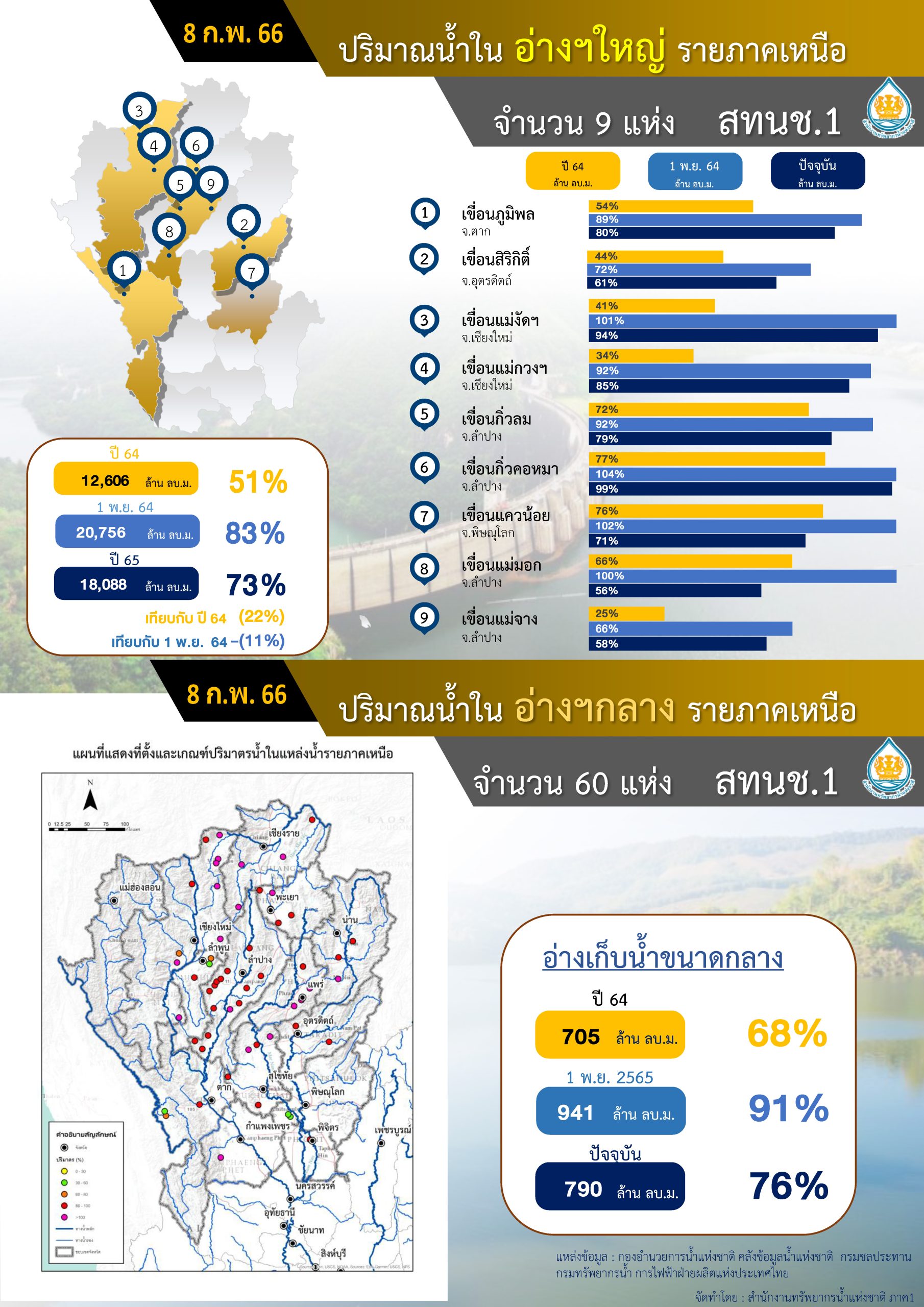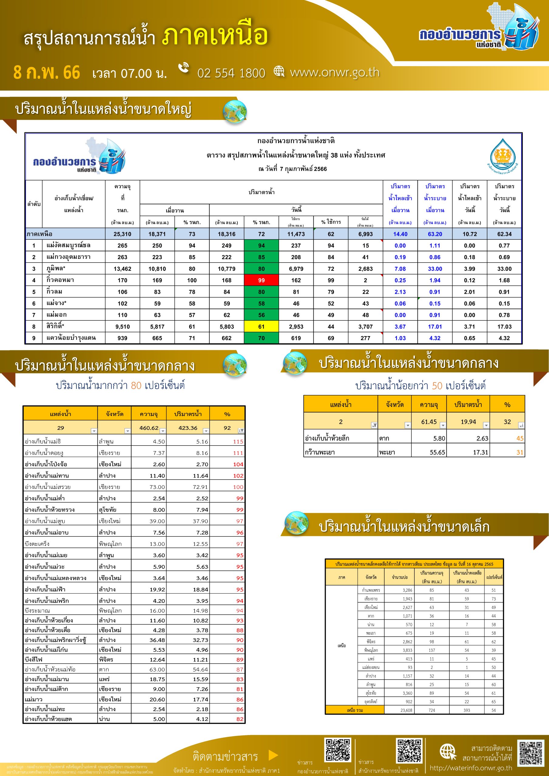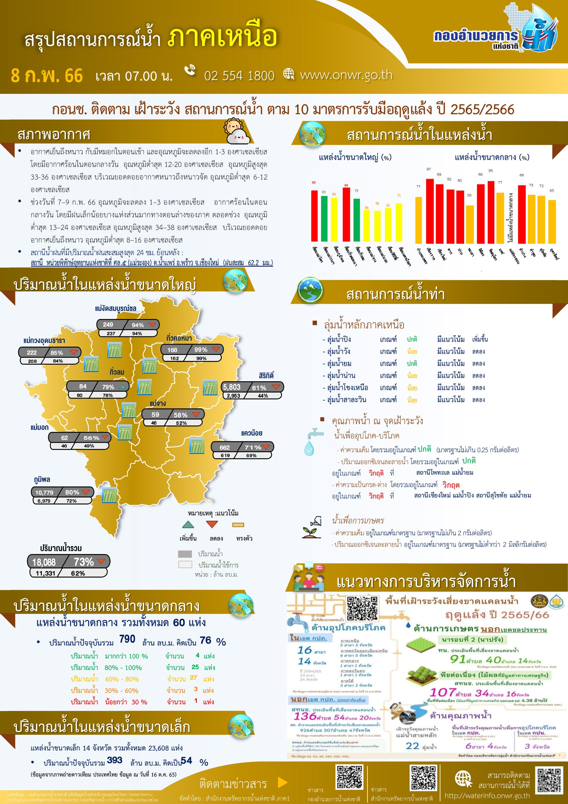 สรุปสถานการณ์น้ำ ภาคเหนือ ประจำวันที่ 8 กุมภาพันธ์ 2566