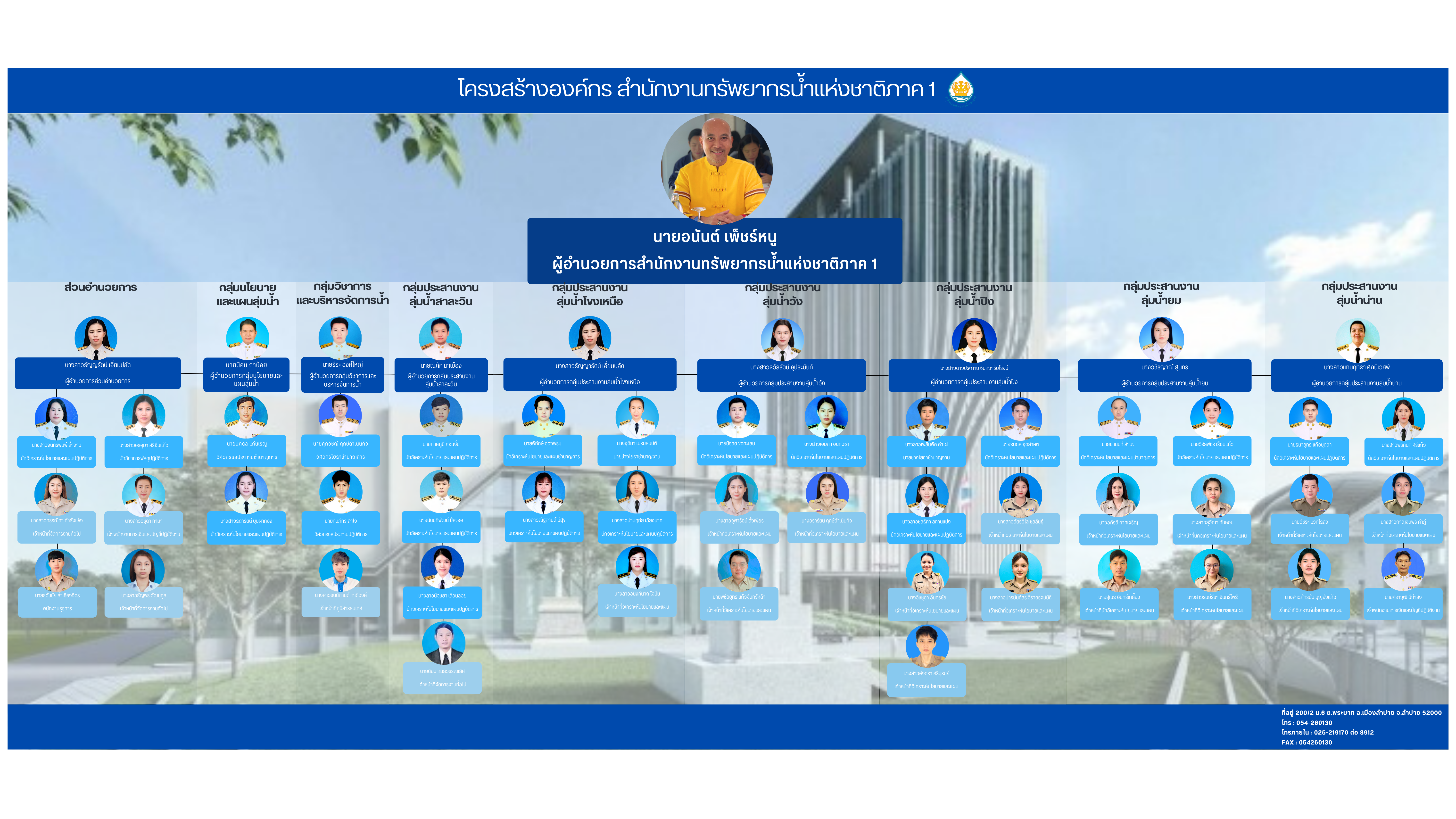 โครงสร้างองค์กรสำนักงานทรัพยากรน้ำแห่งชาติภาค 1 - สำนักงานทรัพยากรน้ำแห่งชาติภาค 1